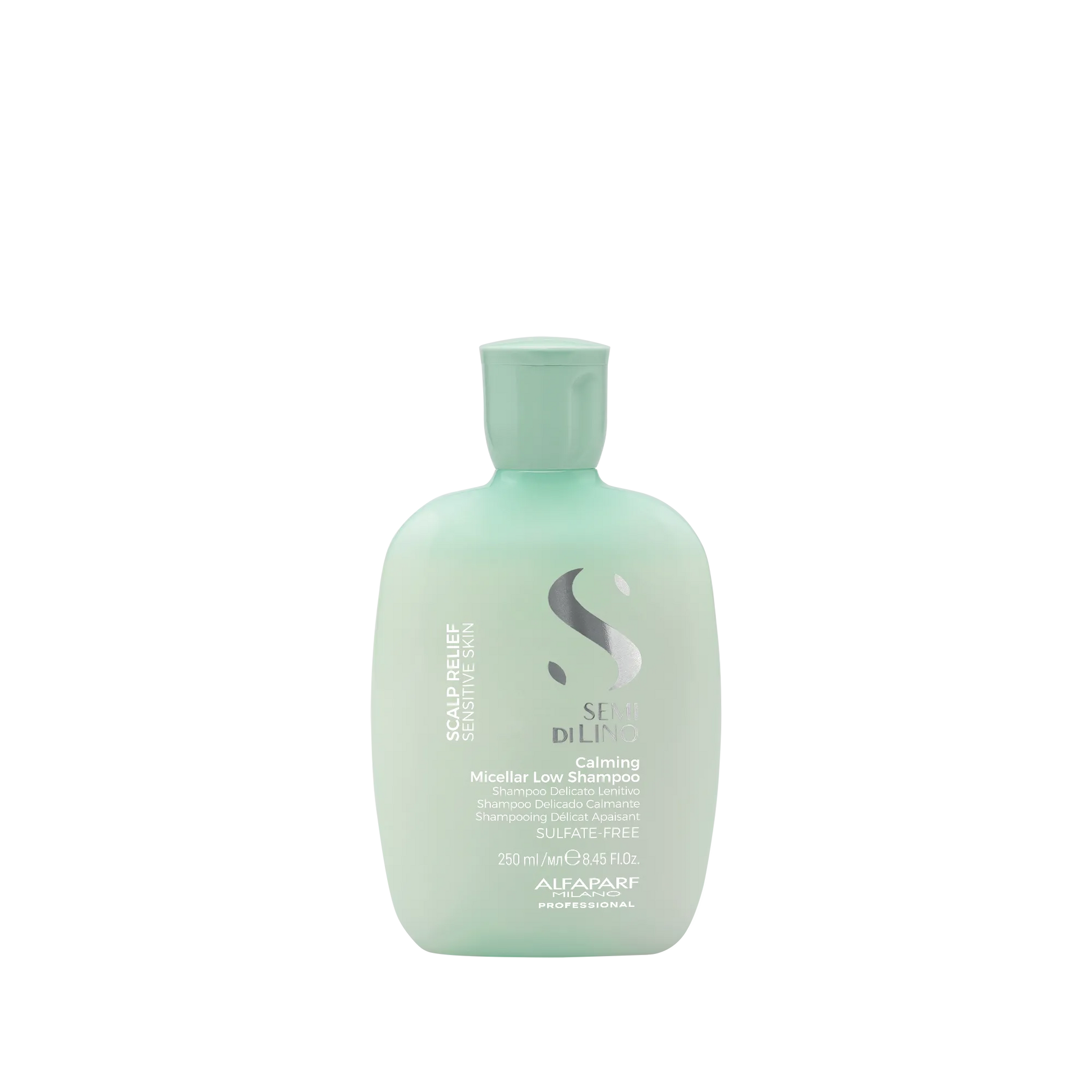 Alfaparf Milano Professional Semi Di Lino Scalp Calming Micellar Low Shampoo gives a soothing effect to sensitive scalps, gently cleansing and alleviating discomfort
