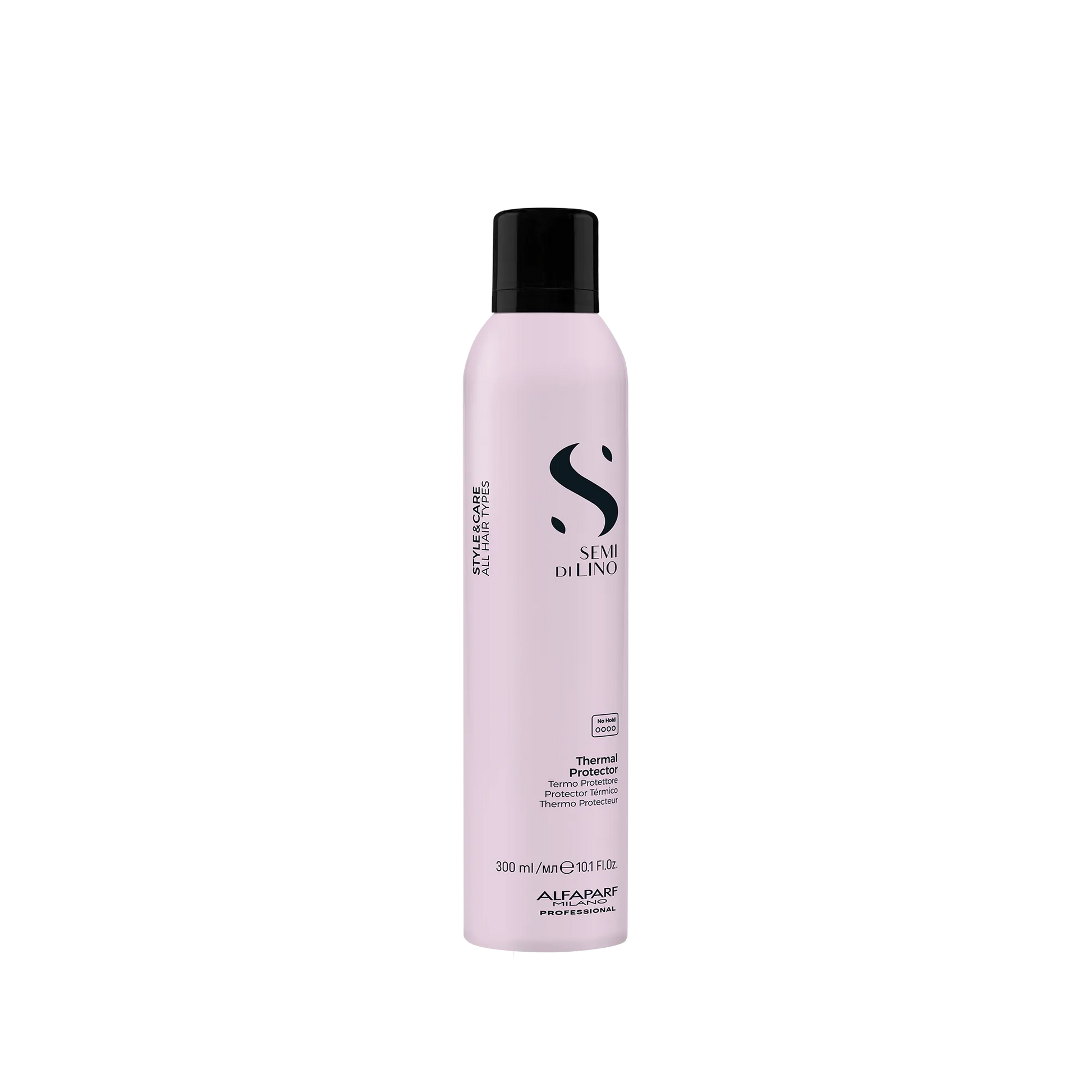 Alfaparf Milano Professional Semi Di Lino Style & Care Thermal Protector protects the hair fiber from hot tools. Its formulation does not excessively wet the hair before the use of hair dryers, flat or curling irons.
