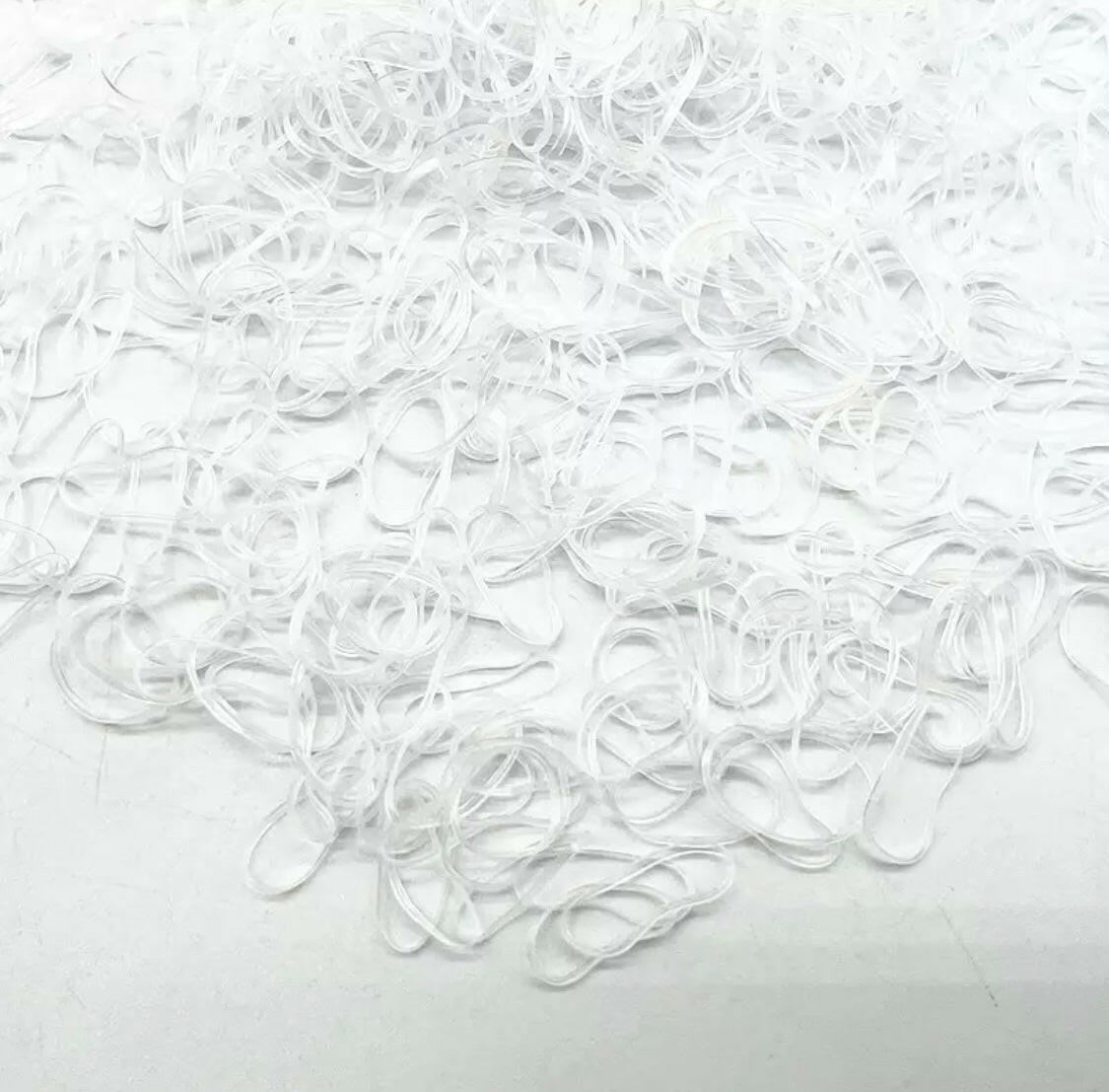 Pack of 500 disposable elastic hair bands. Available in Clear or Black