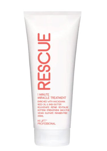 Hi Lift Professional Rescue 1-Minute Miracle Treatment is a deep repair treatment. Macadamia Seed Oil & Shea Butter to revitalise dry, damaged and colour treated hair. Infuses moisture, intensely nourishes.