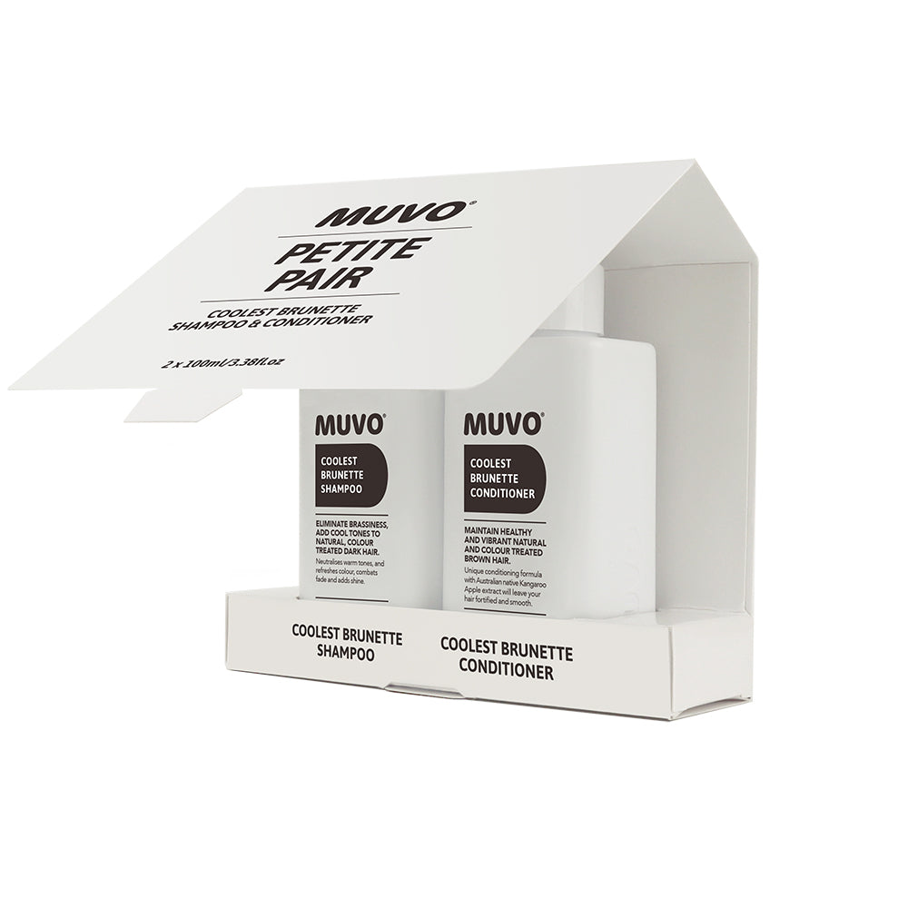 Double up on dark goodness with Coolest Brunette Petite Pair. Eliminate unwanted copper tones, extend your colour and tone highlights. This hydrating duo leaves hair more manageable, prevents fade and adds shine to maintain brunette hair in between salon visits. The perfect couple for travel, gym, trial and gifting!