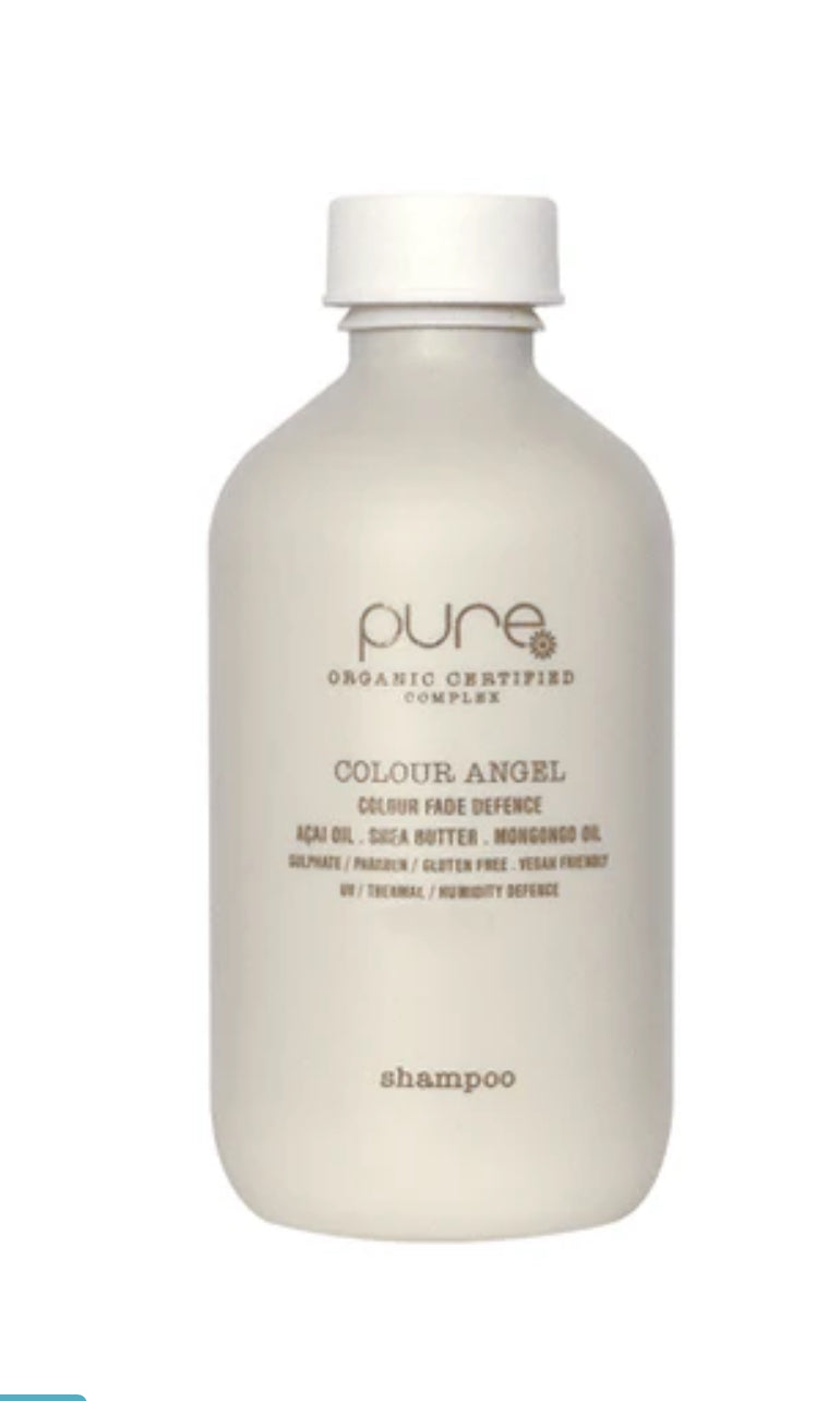 The PURE Colour Angel Shampoo contains Organic Açai Oil, Shea Butter and Mongongo Oil to moisturise, repair and soften fragile coloured hair.